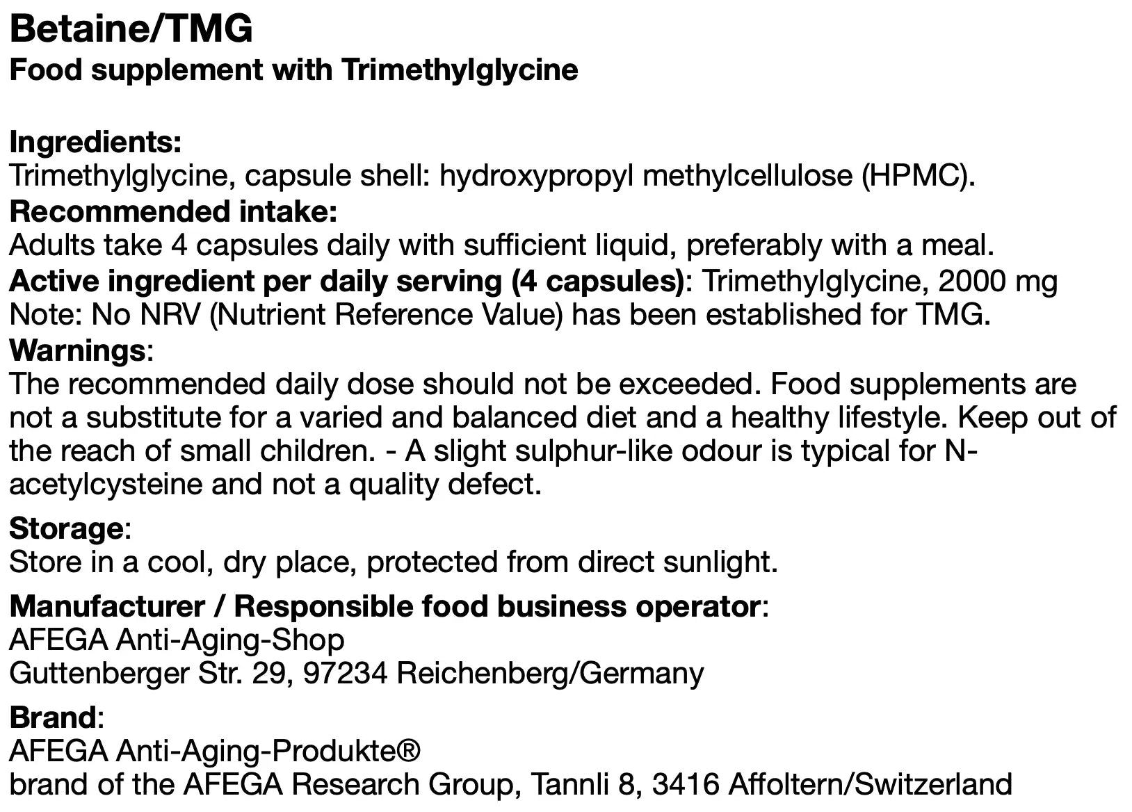AFEGA® TMG / Betain – 2.000 Kapseln à 500 mg